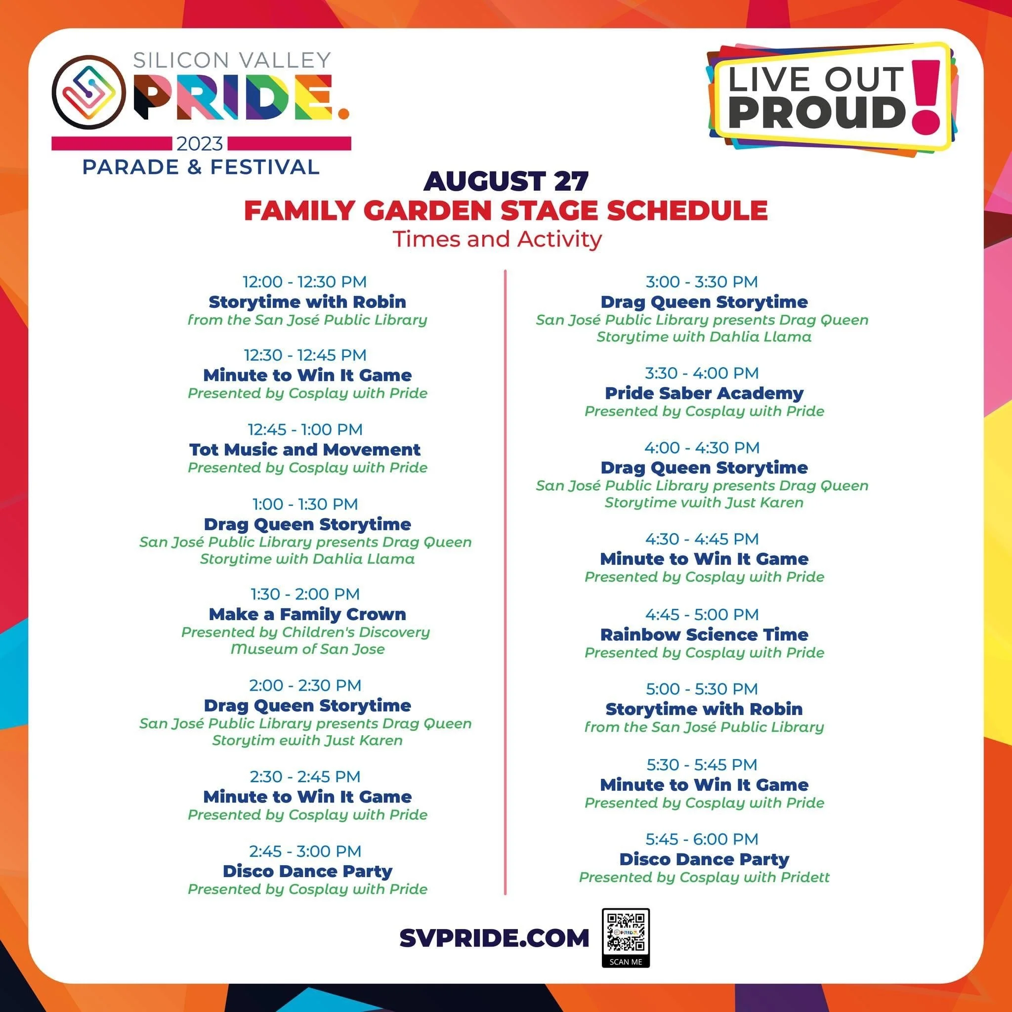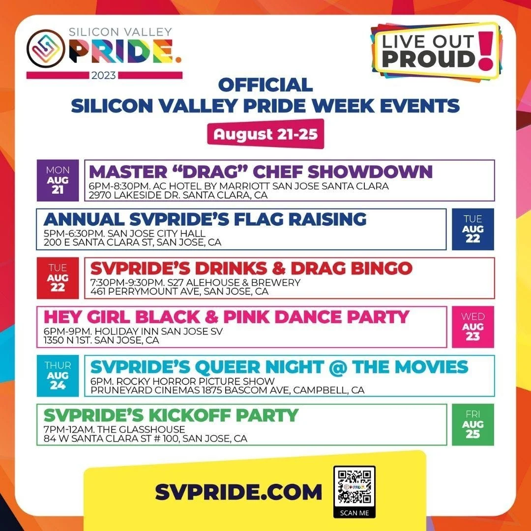 Nicole Altamirano:可以帮助我们提高可见度,帮助我们进行宣传。还可以报名参加我们的游行方队,在嘉年华里租摊位摆摊。硅谷骄傲节的活动细节都在我们的网站上(https://www.svpride.com/)。欢迎大家来骄傲节玩,门票只要5元。我们从8月21日到27日这一整周都有活动,周中的活动都是免费的。硅谷骄傲节是8月26日周六早上6点到晚上11点,晚上有蹦迪和派对。8月27日周日上午的游行会在10点左右开始,下午是非常家庭友好的嘉年华活动,草地音乐会,还有很多有趣的摊位可以逛。欢迎大家邀请更多的朋友一起来玩!