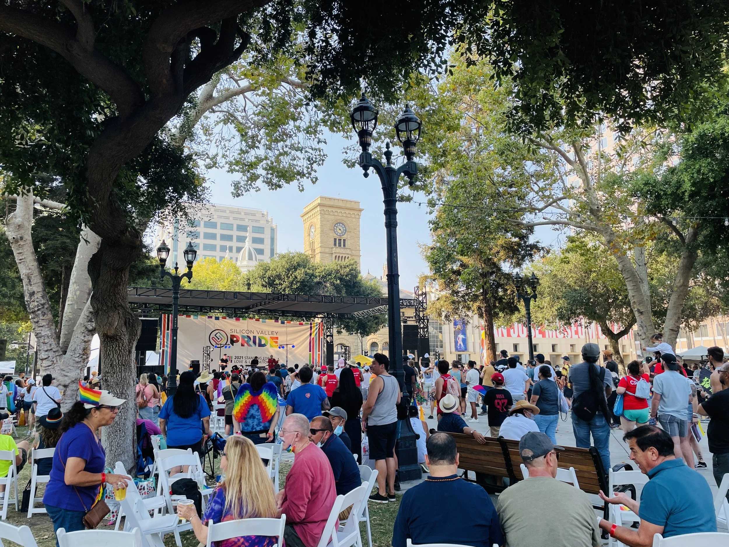 硅谷骄傲节持续一周,游行是27号全天。上午游行,下午圣何塞 Cesar Chavez Park 音乐节嘉年华。